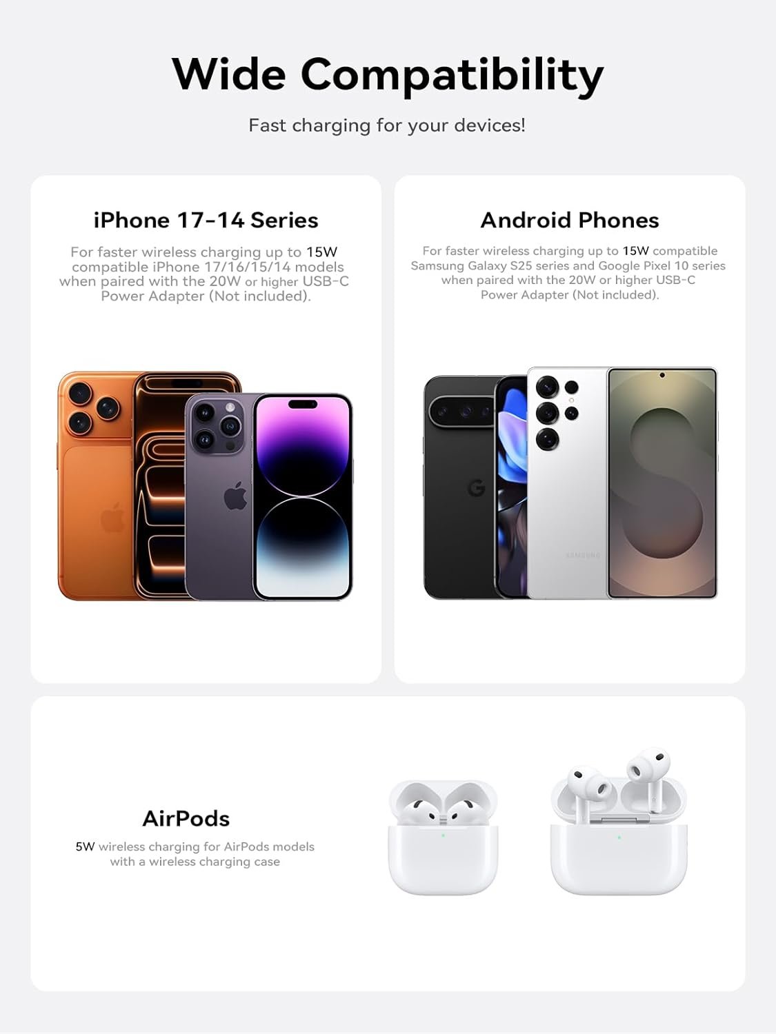 One of the standout features is its Qi2 certification, which ensures official compatibility with MagSafe-enabled devices. This means:
